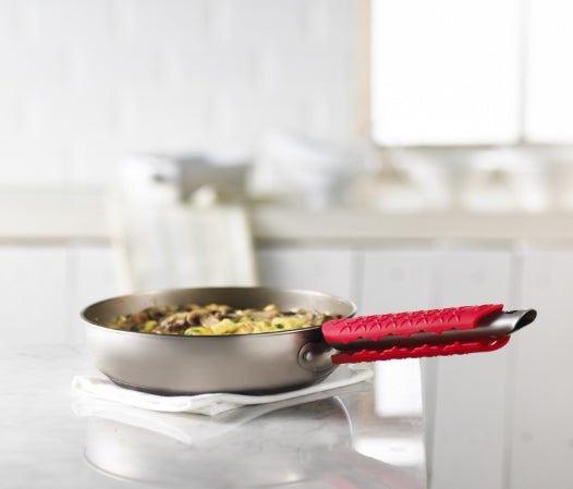 The Silicone Handle Grip offers a safe, heat-resistant barrier for gripping hot pan handles. Crafted from durable silicone, this 7-inch by 2-inch grip provides secure handling, reducing the risk of burns while cooking. Its flexible design ensures a snug fit on various pan handles, enhancing kitchen safety and comfort during food preparation.