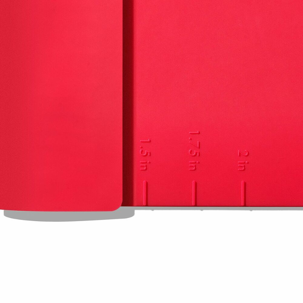 Icebox cookie are a favorite among home bakers since they bake up fast, but we know the forming and chilling of the dough can be tedious. With the OXO Slice + Bake Cookie Helper, we’ve set you up for success! Our set of two handy silicone mats helps you shape, pre-measure and store cookie dough with ease. Once your dough is formed, our mat does the rest—simply lay down your dough and shape into a log. Rest the log on the side with our raised markings that will gently perforate your dough so that once it’s chilled you have an easy guide to follow to slice up uniform cookies. Use our built-in measurement guides on each side of the mat to form your dough to either make 1.5”, 1.75” or 2” diameter cookies. Once your dough is rolled up, use the included end caps to compress and seal the dough, secure the strap and your logs are ready to be chilled in the fridge or freezer until you’re ready to slice and bake! Just be sure to move the dough to a proper cutting surface before slicing – never slice on the mat. Mats and end caps are dishwasher safe.