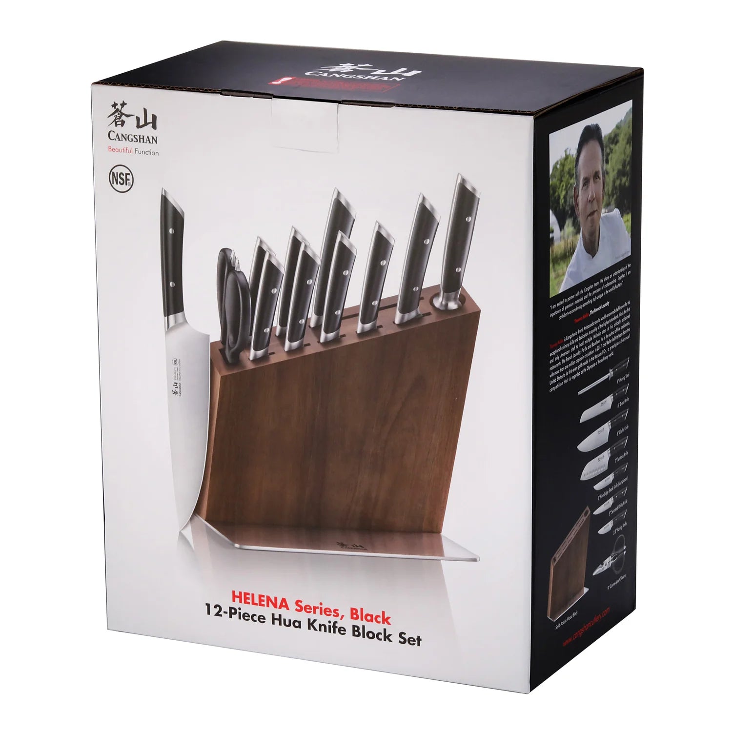 The HELENA Series is an elegantly minimalist interpretation of the modern kitchen knife. A slim, semi-bolster perfectly balances the knife's full tang while complementing the sleek, smooth lines of the handle. Two stain-resistant steel rivets solidly fasten the ergonomic handle to the blade, providing a secure, comfortable grip. Every blade is forged from high-alloy German X50CrMoV15 steel and meticulously heat-treated, ensuring a razor-sharp edge with exceptional durability and edge retention.