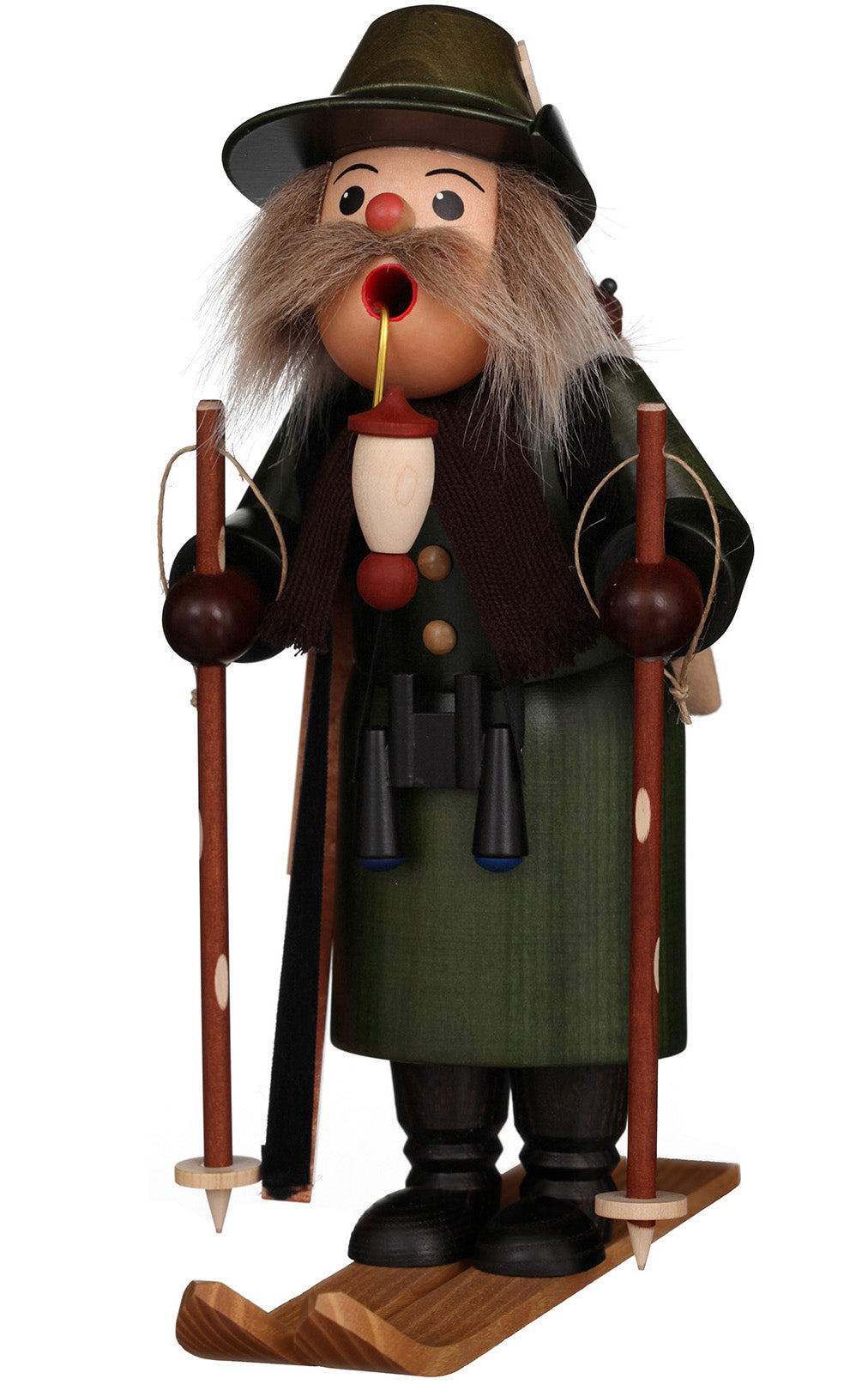Bring a touch of woodland whimsy to your space with the Ranger on Skis incense burner. This hand-crafted wooden figure, hand-painted in Germany, captures a watchful ranger gliding through the forest, pipe in hand, ready to spot any playful surprises. Standing 10.5 inches tall, it’s perfect for adding charm and a bit of smoky magic to your home.