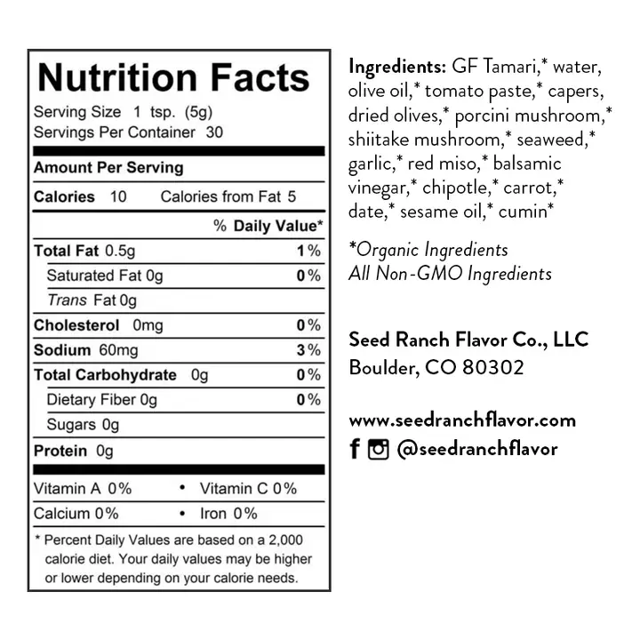 Umami Everyday Sauce (mild) made with organic, wild, and local where possible ingredients.
