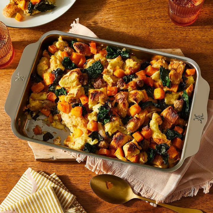 - SECURE HOLD: Baker features wide, curved handles that are designed for a firm hold when removing from the oven, even while wearing oven mitts.