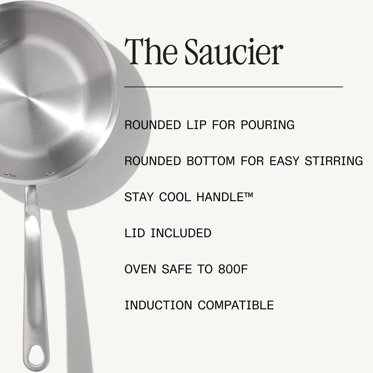 From béchamel to velouté, the Saucier is designed for smooth, fully emulsified sauces. Dishes like risotto and gumbo, which require constant agitation, benefit from the Saucier’s cornerless bottom, which guides the whisk and promotes circulation.