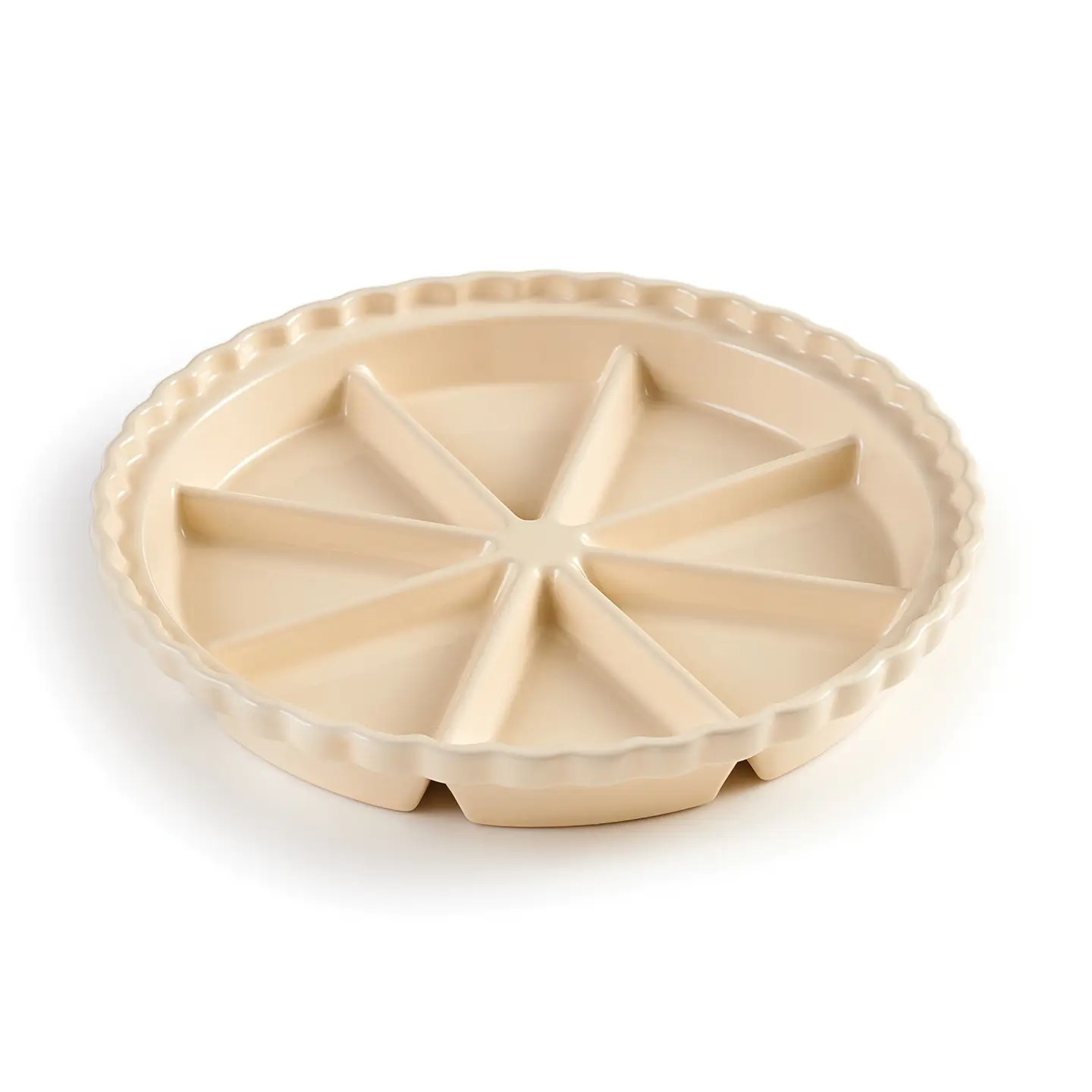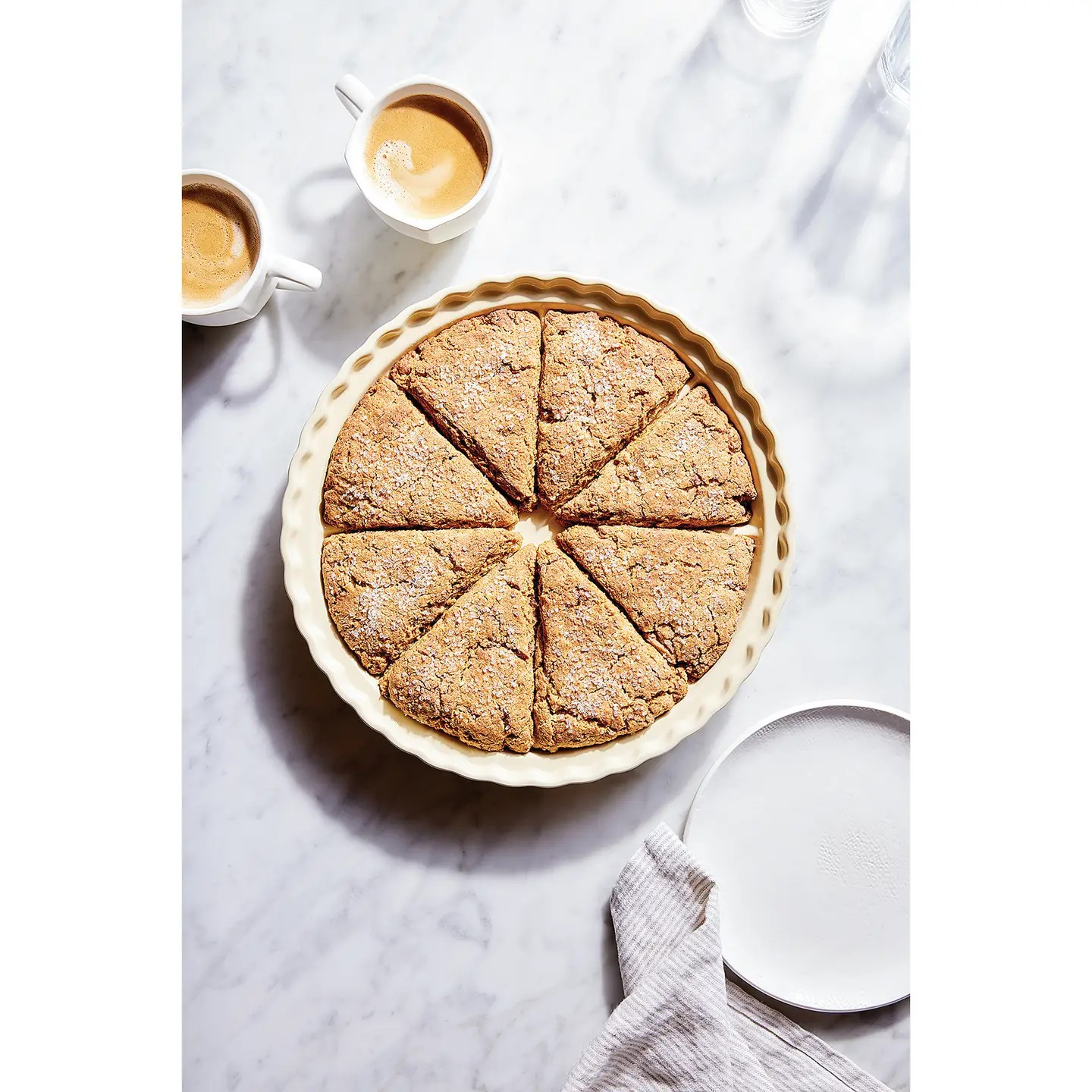 Bake bakery-quality scones at home with the King Arthur Baking Company Ceramic Scone Pan. This durable ceramic pan features even heat distribution for consistently golden crusts and tender centers, while its rustic finish transitions seamlessly from oven to table. The 11 x 11-inch pan holds four perfectly portioned wedges, each accommodating ½ cup of batter. Crafted free from lead, cadmium, BPA, and PFAS, it's oven safe to 480°F and dishwasher safe for effortless cleanup. Ideal for scones, cornbread, and more—elevate your home baking with professional results.