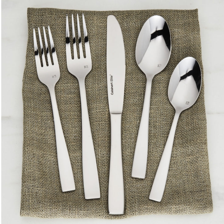 With our flatware, Cuisinart® brings its distinguished reputation for quality and design leadership to the dining room. Handcrafted of the finest heavy-gauge stainless steel, these generously sized pieces are created with the utmost attention to detail. The finish is artfully blended. The craftsmanship is impeccable. And the styling evokes the same French spirit that infuses Cuisinart® Cookware, which we began making in France more than 35 years ago. Set your table with Cuisinart® flatware and transform an ordinary meal into an extraordinary experience. Set includes: 4 Dinner Forks, 4 Dinner Knives, 4 Dinner Spoons, 4 Salad Forks, and 4 Teaspoons.