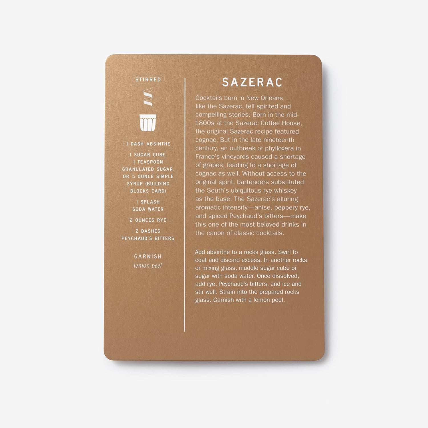 No matter what card you pick, you'll be able to build, shake, or stir your drink with ease by following the step-by-step instructions on the back of the card and then comparing your finished cocktail to the photograph on the front. If you're rusty on techniques, simply consult the handy Basics card and you'll be shaking, stirring, straining, and swizzling your way to a new favorite cocktail in no time! Each card is laminated, making it easy to wipe each one clean after a round of cocktails. So just pick a recipe, pour, and enjoy.