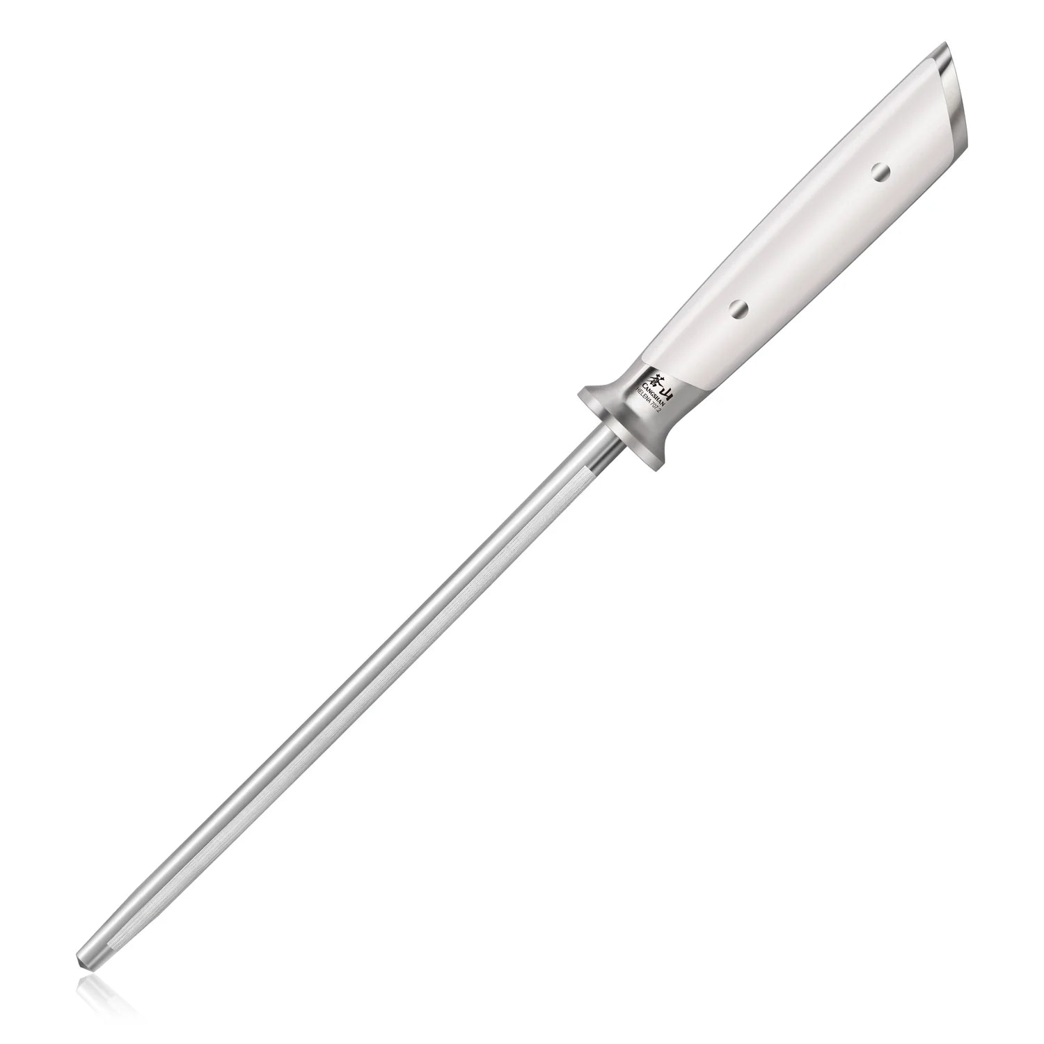 • The 8-inch Honing Steel features a half-grooved and half-smooth finish. The grooved, coarse side of the steel is used for regular maintenance, to realign the microscopic teeth on the blade’s edge. The smooth, fine side of the steel is used to finish the edge with a few swipes of the blade after honing on the grooved side. For average use, the grooved side can be used weekly and the smooth side, daily. Regularly honed knives will retain their edges longer before needing to be sharpened.