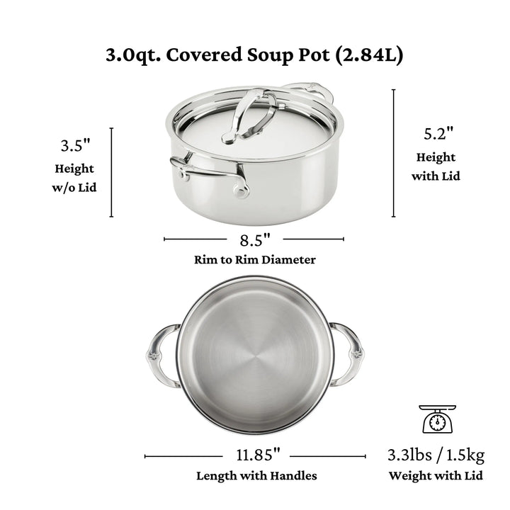 - ELEGANT BY DESIGN: Mirror-polished exterior makes ProBond® Luxe 3-Quart Professional Clad Stainless Steel Soup Pot with Lid a display-worthy addition to any kitchen.