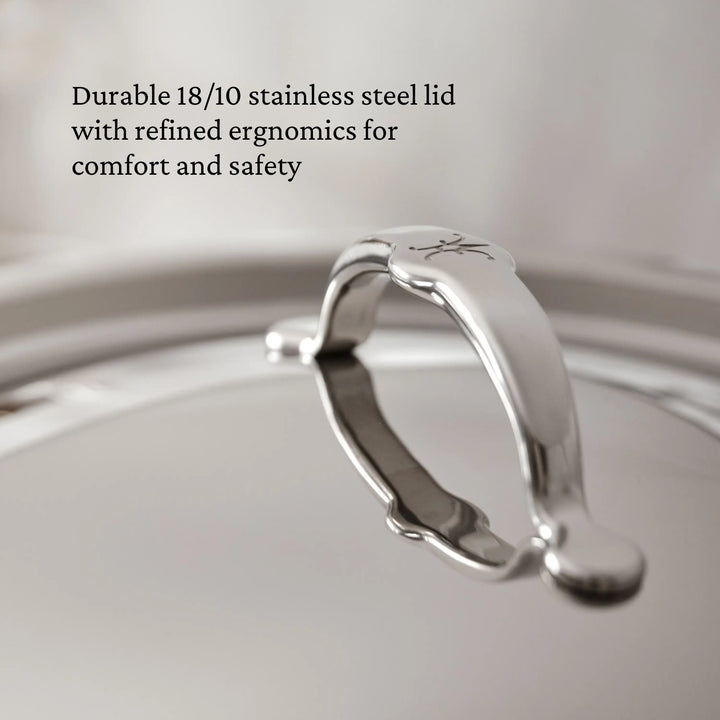 Built to shine, each piece features tri-ply clad stainless steel for lifetime warp-resistance. Sealed rims prevent delamination and offer dishwasher-safe convenience. Induction-suitable and oven safe up to 600ºF, this cookware is equipped with seamless handles designed by Chef Thomas Keller, eliminating food-trapping crevices and finished with flush rivets for easy cleanup.
