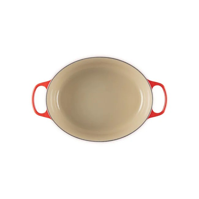 The iconic Le Creuset Dutch oven (8 Qt.) is indispensable in the kitchens of home cooks and professional chefs alike. Expertly crafted from enameled cast iron, the everyday versatility of the Dutch oven makes it ideal for everything from slow-cooking and braising to roasting, baking, frying and more. The oval shape is particularly suited for larger cuts of meat, whole chickens and for baking oval-shaped loaves of bread.