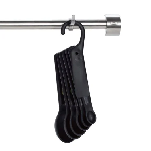 The 7 Piece Measuring Spoons Set has a fanning feature that allows you to take out the spoon you need, leaving the rest neatly snapped together. Handles have soft, comfortable, non-slip grips and color-coded, easy-to-read measurement markings. Spoons rest flat on countertops to prevent tipping.