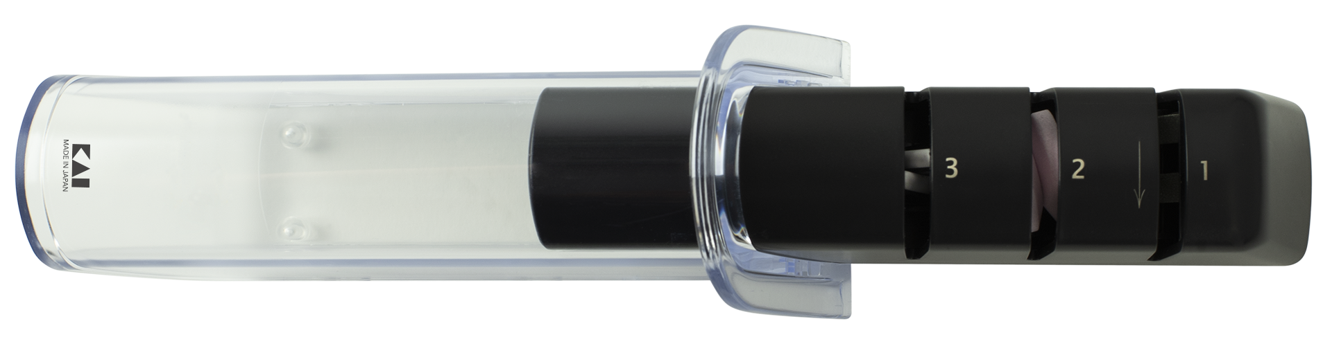 The Kai Diamond and Ceramic Retractable Sharpener sharpen knives easily with a simple 3-step process. The left- or right-handed sharpener is set to the 16-degree angle required to sharpen any Kai straight-edged, double-bevel blade. Just pull the knife through the first slot for rough sharpening, the second slot for refinement, and the third slot for finishing. Your knife's razor sharpness is restored and ready to go to work. Includes retractable cover for easy, compact storage.