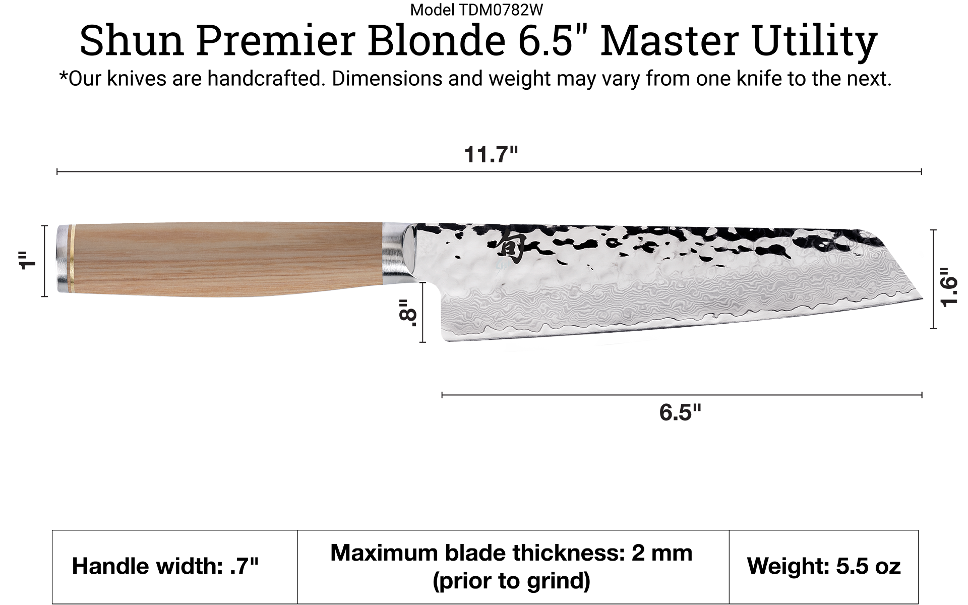 The ultra-versatile Shun Premier Blonde Master Utility combines the nimbleness of a utility knife with the do-it-all capabilities of a chef's knife. The blade is slightly longer and significantly wider, so you can easily accomplish a wide range of food preparation tasks while enjoying the ease of use and agility of a compact knife. Extra width at the heel and a slightly curved belly enables rocking cuts to easily mince herbs and spices. A larger handle gives you a secure, comfortable, and confident grip as you work. The Shun Premier Blonde Master Utility's downturned tip (similar to a kiritsuke) is extra durable. Slice, dice, shred, or portion; you can do it all with this one very beautiful, very functional, kitchen knife.