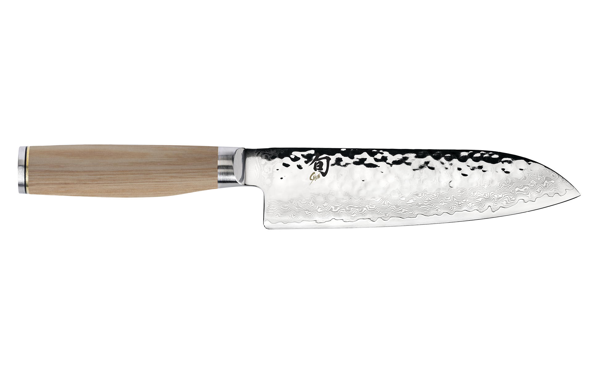 The Shun Premier Blonde 7-in. Santoku is a beautiful, Asian-inspired chef's knife that many cooks today have added to their kitchen favorites. A knife of many talents, a santoku easily handles all the essential kitchen cutting tasks. Slightly shorter than the standard chef's knife, the Shun Premier Blonde Santoku is light, agile, and very easy to maneuver. There's just enough belly curve to enable rocking cuts, which just adds to the Premier Blonde Santoku's versatility. The santoku is as easy to use as a chef's knife and is especially well suited to a down-and-forward cutting motion (push cut).