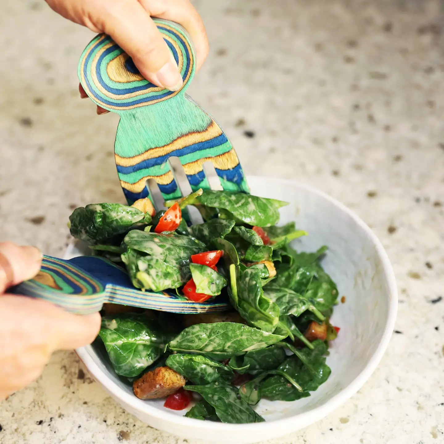 Add a touch of color and fun to your salad preparation with the Island Bamboo Pakkawood Salad Hands. This set includes 2 salad hands made of durable and lightweight Pakkawood material. The colorful and fun design will make salad tossing a delightful experience. These salad hands are also stain resistant, ensuring that they will maintain their vibrant appearance over time. Upgrade your salad serving utensils with the Island Bamboo Pakkawood Salad Hands.