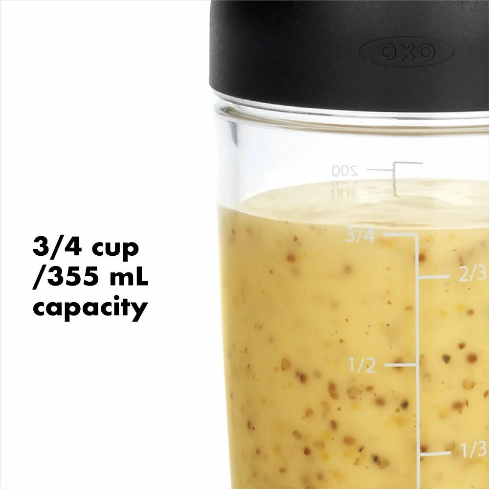 Shake up your salad routine with the OXO Little Salad Dressing Shaker—the quick, mess-free way to blend homemade dressings and sauces. Simply add ingredients, flip the lever to seal, shake vigorously, then flip back to pour with zero spillage. Crafted from durable, BPA-free material that resists breaks and cleans up easily in the dishwasher, this compact shaker transforms tedious whisking into effortless preparation. Perfect for vinaigrettes, marinades, and more, it's the kitchen essential that makes homemade taste simple.