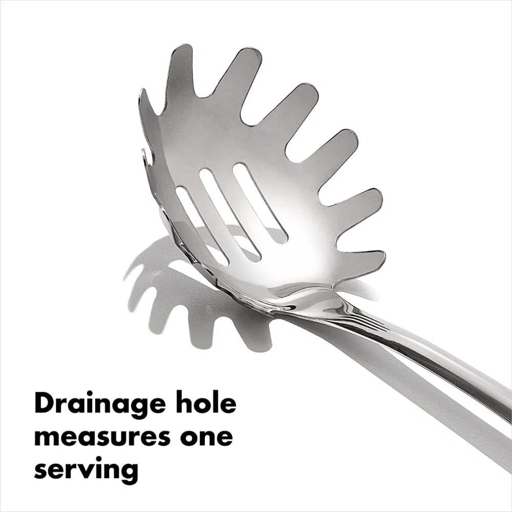 Elevate your pasta nights with the OXO Steel Spaghetti Server, designed to handle all pasta shapes—from bucatini and fettuccini to rotini and bowties. Its deep bowl and smart prongs securely hold long strands for easy serving, while the built-in drainage hole lets you measure and lift pasta straight from boiling water. Crafted with sleek stainless steel and featuring a comfortable handle, this server is perfect for both cooking and serving at the table. Make every pasta meal effortless and stylish with this versatile kitchen essential.
