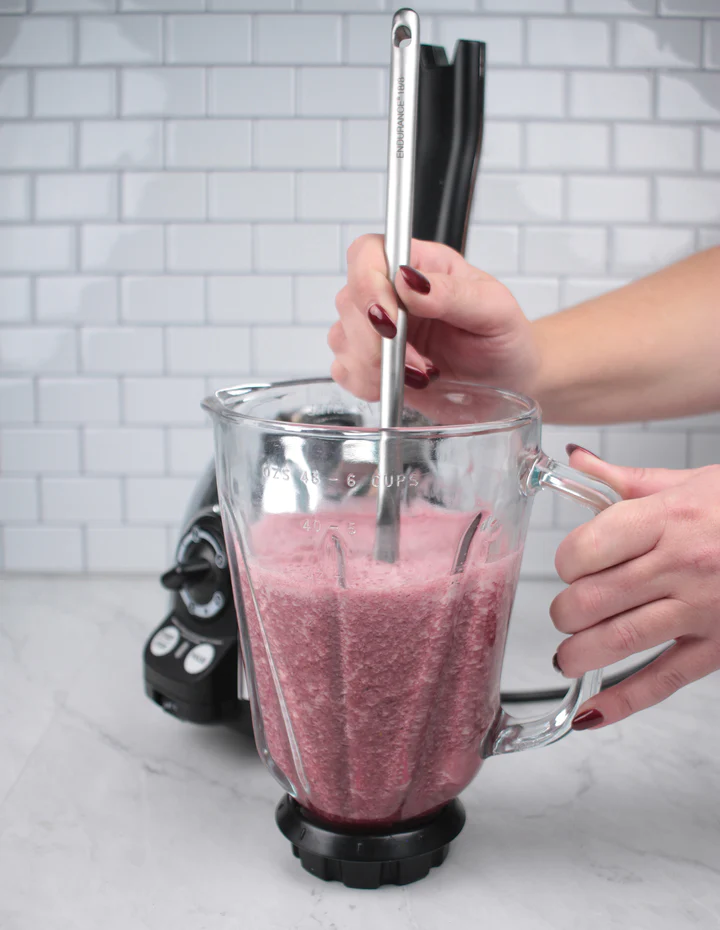 Reach the bottom of your blender with this Spatula! The Smoothie Spatula is the perfect tool for all your blending needs. With its extra-long, 10-inch stainless steel handle and silicone spatula, this spatula is both durable and versatile. It's also BPA free and dishwasher safe, making cleanup a breeze. Add this must-have kitchen gadget to your cart now and take your smoothie game to the next level!