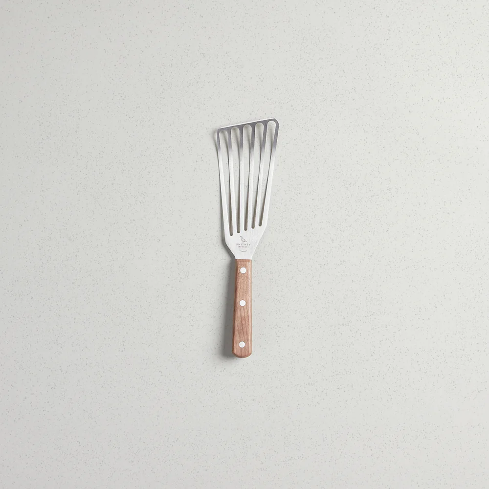 Whether you are flipping an egg or a delicate piece of fish, this walnut handle spatula is an ideal tool for precise cast iron cooking. It also comes in handy when you need to scrape charred food remnants from your skillet's surface.