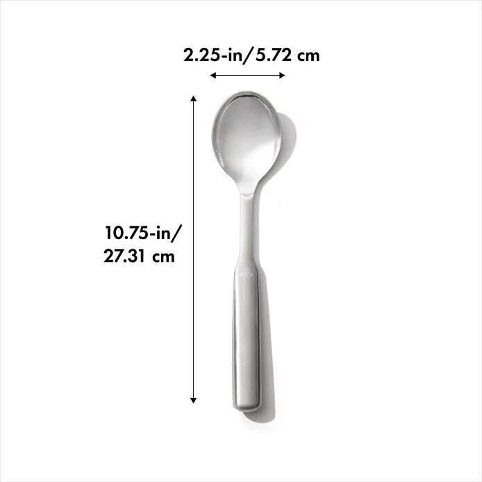 The OXO Steel Serving Spoon will earn its place on your dinner table (and kitchen) every night. It has a deep well, which gets more food and sauce with every scoop, and a slightly angled head, so that you don’t have to stand up to serve. The tapered handle features a non-slip grip for added comfort. And it’s made of sturdy stainless steel that’s built to last. Dishwasher safe.