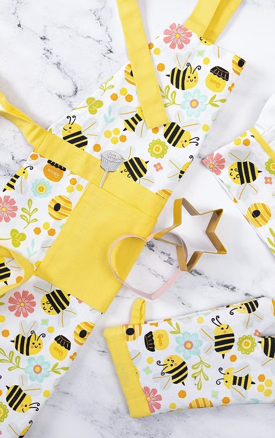 Let your little chef dive into kitchen fun with this 3 Piece Mini Kids Chef Set! Made from sturdy all-cotton fabric, the 24" apron, adjustable chef hat, and 9" oven mitt are ready for all kinds of messy adventures. Adjustable straps, roomy pockets, and cute embroidered touches mean a comfy, just-right fit every time. From cookie dough to finger paints, this set keeps your kiddo protected in style. Choose from two delightful designs perfect for any budding foodie’s imagination! Choose from Chef in Training or Bees