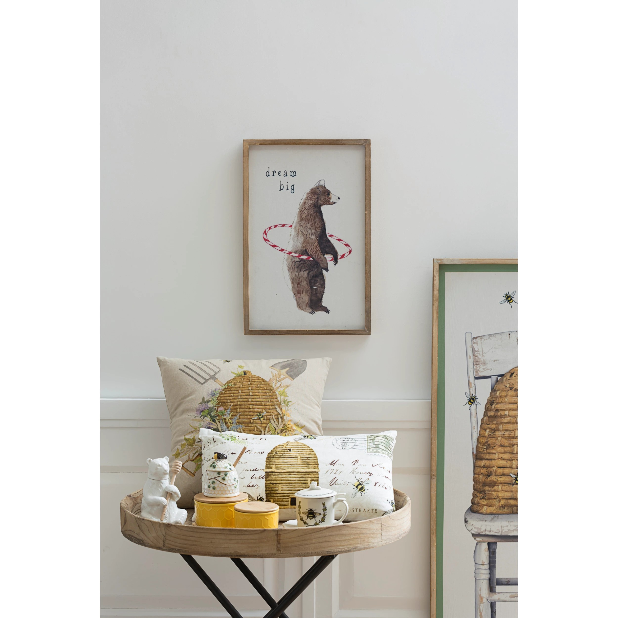 Sweeten your kitchen with this charming bear-shaped honey pot. The adorable ceramic design doubles as functional décor, keeping your honey accessible and your countertop stylish. A bamboo dipper nestles perfectly in the bear's paws, ready whenever you need it. Whether drizzling over toast, tea, or yogurt, this whimsical piece brings warmth and personality to your culinary space. A delightful addition that combines practicality with playful charm.