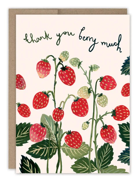 Express your gratitude with the Berry Much Thank You Card, featuring a charming illustration by Louise Mulgrew. Sized at A6 (4.6" x 6.4"), this card offers ample space for your heartfelt message inside, which reads "You're so sweet!" Printed in the USA on 100% post-consumer recycled paper, it combines quality with eco-consciousness. The included brown Kraft envelope adds a rustic touch, perfect for thoughtful, sustainable correspondence.