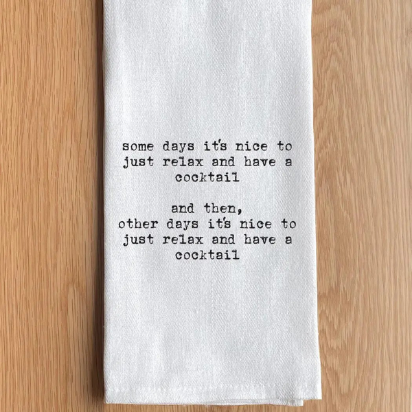 Bring home the charm of handmade with the "It's Nice to Just Relax" tea towel. Crafted from 100% cotton and hand-printed one at a time, this towel softens with every wash and stands up to daily kitchen tasks with durable, absorbent fabric. Perfectly sized for all your cooking and cleanup needs, it also makes a thoughtful hostess gift when wrapped around fresh banana bread. Keep it looking great by washing cold and drying warm for lasting comfort and style. Say it with a towel and add a playful touch to your kitchen routine!