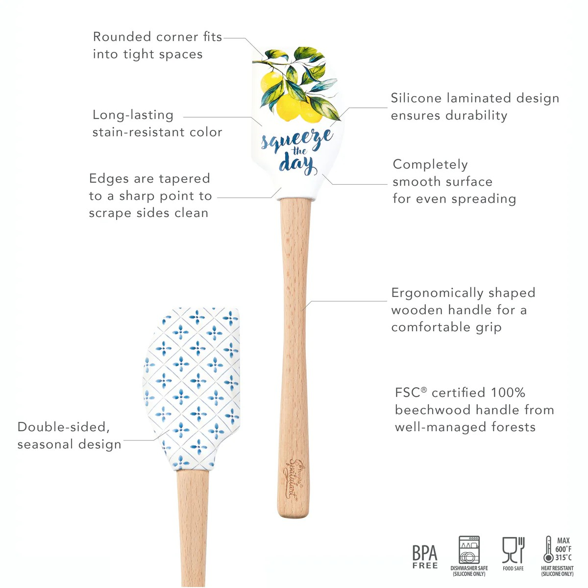 Squeeze the Day with this vibrant silicone spatula that brings color and function to your kitchen! Featuring a fade-proof design that stays bright through countless uses, this heat-resistant tool handles temperatures up to 400°F, making it perfect for batter, eggs, scrambles, and spreading. The removable silicone head is dishwasher safe for easy cleanup, while the natural wood handle requires just a gentle hand wash to maintain its beauty. Built with BPA-free nylon and premium silicone, it's a kitchen essential that's as durable as it is delightful.