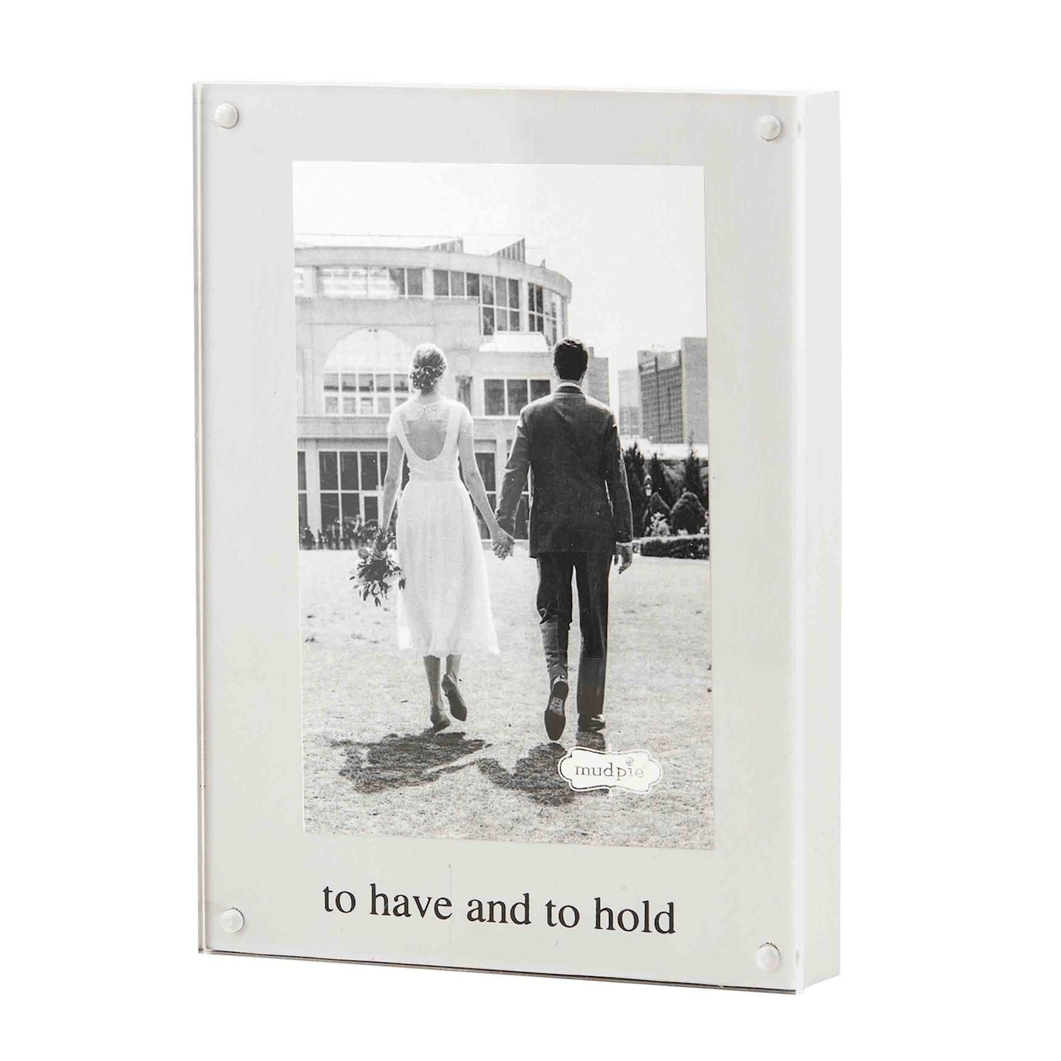 Magnetic wood block frame features acrylic magnet surface to hold 4" x 6" photo in place.