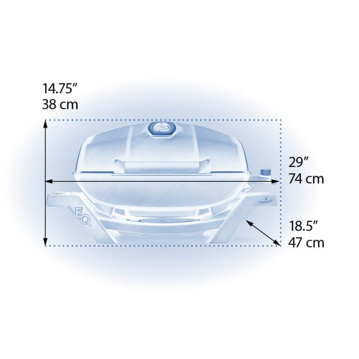 Napoleon's TravelQ™ PRO285 Portable Electric Grill is stylish, all-black with a cast aluminum, high-topped lid design lets you take portable grilling to the gourmet level. The windproof design will hold heat in. High heat searing is a snap and you'll know it's a Napoleon with the iconic WAVE™ cooking grids for those distinctive sear marks. Like your favorite cast iron skillet, the porcelain coated cast iron cooking grids heat evenly and provide a non-stick surface for your food, seasoning like a cast iron skillet. The thermostat and burners are removable for quick and easy cleaning of the porcelain drip tray. Easy to carry and set up, this grill is perfect for any adventure. You can't beat this professional grill in a portable package.