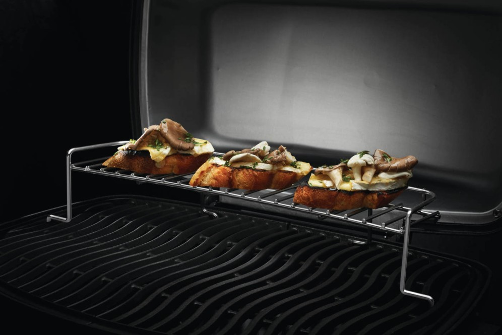 The TravelQ™ Warming Rack adds an extra 65 square inches of grilling cooking area to everyone's favorite portable grill. Ideal for cooking vegetables, sandwiches, potatoes, and warming food, the innovative hinge design allows the rack to flip back when not in use to provide full access to the main cooking grids on the TravelQ™. This grilling accessory fits the TravelQ™ PRO285X/PRO285/PRO285E/TQ285X-1/TQ285-1.